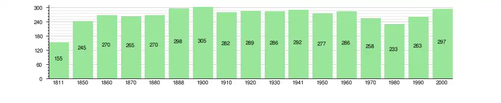 Ménières has a population (as of December 2020) of 427.[6] As of 2008, 7.2% of the population are resident foreign nationals.[7] Over the last 10 years (2000–2010) the population has changed at a rate of 29.1%. Migration accounted for 16.7%, while births and deaths accounted for 9.6%.[8]