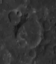 Möbius is a lunar impact crater that is located on the Moon's far side, beyond the eastern limb and northeast of the Mare Marginis. It lies less than one crater diameter to the northwest of the larger, 90-km-diameter Hertz, and just to the southeast of Popov. To the north of Mobius is the crater chain designated Catena Dziewulski, which takes its name from the crater Dziewulski to the north-northwest.