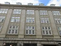 Møntergården (No. 19-21), a monumental office block located on the other side of the Vognmagergade, was built in 1915–16 to design by H. P. Jacobsen for A. C. Illum. Jacobsen also worked for Illum on the expansion of the Illum department store. The furniture and design brand GUBI has a flagship store in the ground floor at No. 19.[7]