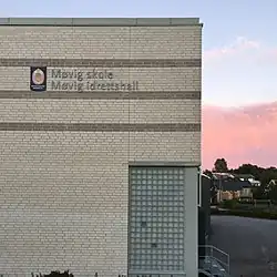 Møvik has the only junior high for the district of Voiebyen. The Kristiansand Cannon Museum is located in the hills south of Møvik, near the Møvik fortress.