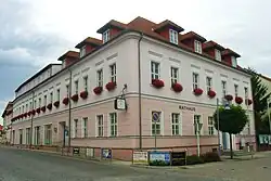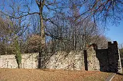 During World War II, a subcamp of the Sachsenhausen concentration camp was located in the present-day district of Trebnitz.[6] The prisoners were Norwegians, Poles, Germans and Soviets.[7] In early 1945, a death march of prisoners of various nationalities from the dissolved camp in Żabikowo to Sachsenhausen passed through the town.[8] In the war, more than 400 inhabitants of Müncheberg died fighting on various battlefields in Europe. Combat in Müncheberg between the Wehrmacht and the Red Army took place from April 17 to April 19, 1945 and destroyed 85% of the town.