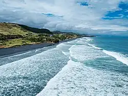 Mōkau is a small town on the west coast of New Zealand's North Island, located at the mouth of the Mōkau River on the North Taranaki Bight. Mōkau is in the Waitomo District and Waikato region local government areas, just north of the boundary with the New Plymouth District and the Taranaki Region. Prior to 1989, the town was classed as being in Taranaki, and there is still a feeling that the community of interest is most associated with New Plymouth, 90 km to the southwest.[6] State Highway 3 passes through the town on its route from Te Kūiti to Waitara and, eventually, New Plymouth.