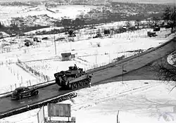 The tank recovery vehicle M74 (M74)[1] was an engineer vehicle used by the U.S. Army in the 1950s. It was designed to cope with the heavier weights of the M26 Pershing and M47 Patton. It could also be suitable for light dozing, since it had a hydraulic, front-mounted spade.[2] 1126[1] were produced by Bowen-McLaughlin-York by converting M4A3 Sherman tanks starting in 1954. From 1956, 60[1] M32B3A1s were converted by Rock Island Arsenal until 1958.[3]