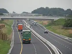 Construction of this 16 km (10 mi) scheme started in December 2007. The section opened to traffic on 25 May 2009, some nine months ahead of the original target completion date.[19] Like the Cashel-Cullahill project, the Fermoy-Mitchelstown scheme was redesignated a motorway during its construction, having originally been envisaged as a HQDC.[20] It was built by Roadbridge Ltd. at a cost of €174 million.[19][21]