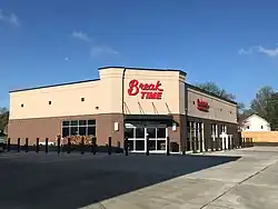 Break Time is a chain of convenience stores and gas stations owned and operated by MFA Oil.[3] It is also headquartered in Columbia; and operates 74 stores across the state.[4] All Break Time locations sell MFA Oil gasoline[5] and BOSS diesel fuel.[6] Nearly half a dozen Break Time locations have a car wash. The convenience store offers a variety of food and drink options, including their proprietary Dashboard Diner sandwiches, Smokestack Bar.B.Q., Krispy Krunchy Chicken, Hunt Brothers Pizza, and homemade breakfast sandwiches. The locations have beer caves as well as coffee and cappuccino options.