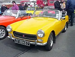 The first version, announced at the end of June 1961,[3] was essentially a slightly more expensive badge-engineered version of the MkII Austin-Healey Sprite deluxe version. The original 'frogeye' Sprite had been introduced specifically to fill the gap in the market left by the end of production of the MG T-type Midget as its replacement; the MGA had been a significantly larger and more expensive car with greater performance. Many existing MG buyers turned to the Sprite to provide a modern low-cost sports car and so a badge-engineered MG version reusing the Midget name made sense. The new Midget differed from the Sprite only in grille design, badging, improved interior trim, better instruments and added external polished trim to justify its higher price.[4]
