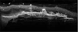 NIWA sonar image of Mikhail Lermontov resting on the seafloor.