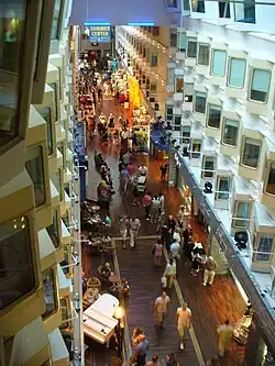 There are some small external differences by which the Symphony can be told apart from her sister: the outer decks on the Symphony are painted light blue (they are green on the Serenade), the eyes of the seal in Symphony's funnel are blue whereas they are white with a blue outline on the Serenade, and the light box with the ship's name on it is white on the Symphony, but blue on the Serenade.
