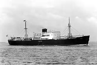 MS Tunis was a Danish motor ship in commercial service for Det Forenede Dampskibs Selskab (DFDS), Copenhagen, Denmark, as a cargo ship delivered to DFDS on 15 January 1936. Tunis was the first of four sister ships, two built in 1936 and two in 1938, that operated for DFDS. The ship's normal service was Copenhagen to the Mediterranean until war in Europe when all four of the ships were put into Atlantic service.