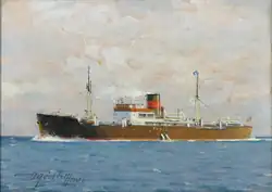 There was no Danish government in exile, the government completely subject to German influence, and Danish ships were thus considered by Britain and France to be enemy ships subject to seizure. Danish ships not seized by the belligerents sought refuge in neutral ports, particularly the United States. In New York a Danish Shipping Committee, without government powers, attempted to negotiate an "understanding" with representatives of the British and French governments without success. Under German pressure the Danish government ordered the ships in neutral ports to remain there and their crews to refuse any service including a law in Denmark prohibiting crews in neutral ports to sign on with other ships. The shortage of ships and crews among the Allied belligerents and neutral United States led to the United States seizing Danish ships on 30 March 1941.[7][9] Denmark officially protested the seizure as against international law and demanding immediate return to no avail.[9][10] In 1958 the United States offered Denmark $5,396,202 in settlement of claims for use and loss of all forty vessels including Tunis.[11]