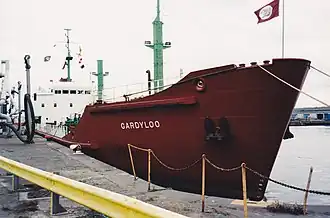 MV Gardyloo was a specially designed sewage dumping vessel that operated from Leith between 1978 and 1998.[1][2] The ship's name is an 18th-century word derived from the French "gardez l’eau" ("mind the water"), used in Edinburgh to warn passers-by of waste about to be thrown from a window into the street below.[3] Prior to 1978, the city of Edinburgh's waste was discharged into the Forth from a series of eight outlets along the coastline, where it often washed back up on beaches and rocks.[1]