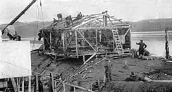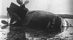 For more than 20 years the ship rested relatively securely on underwater rock. Metal prices rose after the Second World War, and in 1951 the Italian salvage company Salvamar ("Seasaver") secured the marine salvage rights at the wreck site. A complete salvage was impossible and thus the strategy was to remove piece by piece all usable metal parts to melt down and sell. In 1953 the rescue tug St. Christopher (formerly HMS Justice) was chartered to assist in the salvage operations. The tug herself ended up being beached and abandoned during the work and remains near Ushuaia today, a monument to the treacherous channel.[3] In 1954 the attempt was begun to drag the wreck to Ushuaia where the more difficult dismantling could be undertaken. The salvage crew used floating devices to bring the ship back to the vertical. Finally the ship turned upright and slid off the reef, and on 14 October 1954 three tugboats began slowly pushing the remaining wreck to Ushuaia. However, when the little convoy had traveled less than a mile, the ship again listed to port and slowly slid beneath the water. Monte Cervantes irretrievably sank into the 130-meter (427-foot) depths of the Beagle Channel.