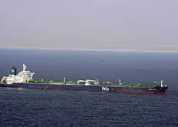 MV Manifa (formerly MV Sirius Star) is an oil tanker formally owned and operated by Vela International Marine.[3] With a length overall of 330 m (1,080 ft) and a capacity of 2.2 million barrels (350,000 m3) of crude oil, she is classified as a very large crude carrier or VLCC.[3] Vela is based in the United Arab Emirates and is a subsidiary of the Saudi Arabian state oil company Saudi Aramco. Sirius Star is one of Vela's 24 tankers, of which 19 are VLCCs. Since her launch, the ship has been registered in Monrovia under the Liberian flag of convenience. She has since been reflagged to Saudi Arabia.[1]