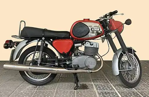 The motorcycles of the MZ TS 250 series were built at the VEB Motorradwerk Zschopau between 1973 and 1976. The manufacturer presented the newly developed TS 250 to the public for the first time at the Leipzig Autumn Fair in 1972[1] and began mass production in April 1973.[2] In June of the same year, the TS series was supplemented by the MZ TS 125 and TS 150.