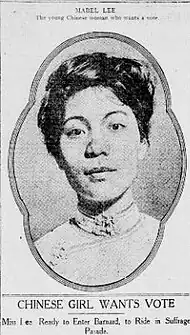 - ^ Yang, Jia Lynn (2020-09-19). "Overlooked No More: Mabel Ping-Hua Lee, Suffragist With a Distinction". The New York Times. ISSN 0362-4331. Retrieved 2023-07-23.