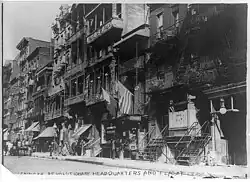 Lee spent her early childhood in China, attending a missionary school where she learned English. She was raised by her mother and grandmother while her father was in America.[15] It has been reported she traveled with her mother to America in the summer of 1900 when she was four years old to reunite with her father.[13] However, most articles, including a 1912 New-York Tribune article, made mention that she settled with her family in New York by 1905. She was also an only child but the same New-York Tribune article writes of a baby sister.[12][11] Her family lived in a tenement at 53 Bayard Street in Chinatown. She attended New York City's public schools, specifically Erasmus Hall High School in Brooklyn, which was a school meant to accommodate the increase in immigrant children.[14][12][16]
