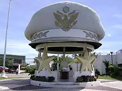 The structure features the "scrambled egg hat" of MacArthur. The stars represents MacArthur's military rank as a five-star-general. A replica of a USAFFE PT Boat encased inside a glass is featured at the center of the monument.[3] The marker is recognized as a historical site by the National Historical Commission of the Philippines.[4]