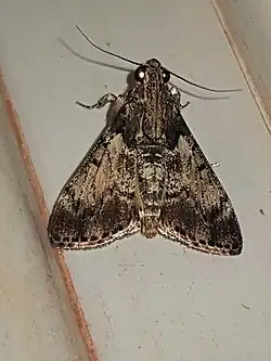Macalla thyrsisalis, the mahogany webworm moth, is a species of snout moth in the genus Macalla. It was described by Francis Walker in 1859. It is found in southern Florida, the Bahamas, Hispaniola, southern Mexico, Central America, Trinidad and the Amazon delta in Brazil.