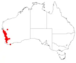 Macarthuria australis is an erect or spreading, wiry shrub, in the family Macarthuriaceae endemic to Western Australia.[3] It grows from 0.15-0.75 m high and has white/white-cream flowers, and may be seen in flower from May to February although mainly from August to September. It grows on sand and laterite, on coastal sandplains, sandhills, and roadsides.[3]