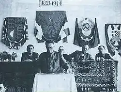 Evripidis Bakirtzis, leading member of the Greek Resistance and Chairman of the PEEA, addresses the National Council in Evrytania, May 1944.