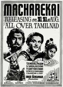 Macha Rekai is a 1950 Indian Tamil-language film directed by P. Pullayya and produced by T. R. Mahalingam. It is based on Thanjai N. Ramaiah Dass' play of the same name. The film stars Mahalingam, S. Varalakshmi, Santha Kumari, B. R. Panthulu, Kumari Kamala and C. T. Rajakantham. It is also the feature film debut of Vijaya Nirmala, who portrays the younger version of Mahalingam's character. The film was released on 11 August 1950 and became a moderate success.