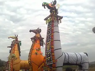 According to the legend the king of ruling that area wished to conduct the festival by live horses as a competition towards the elephant festival Uthralikkavu Pooram, but due to the lack of horses in Kerala and inability to domesticate horses he abandoned that wish and started celebrating with artificial horses. [1][2][3][4]