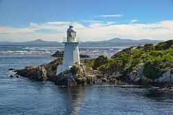 - Bonnet Island – in Kelly Channel at entrance to harbour (42° 13′ S, 145° 14′ E)[9]