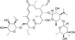 Macrocin is a macrolide antibiotic. Biosynthetically, it is produced from demethylmacrocin by demethylmacrocin O-methyltransferase[1] and is converted to tylosin, an antibiotic used in veterinary medicine, by macrocin O-methyltransferase.[2]