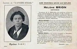 Madeleine Vernet gave a home to the eldest son of Marie and François Mayoux, who had been imprisoned for anti-militarist propaganda, and organized a defense committee for the teacher Hélène Brion, secretary of the Épône board.[1] Two weeks after Brion had been arrested, Vernet produced a 30-page pamphlet that presented the case as another Dreyfus affair. She wrote, "From this tissue of infamies it came out that Hélène Brion was a dangerous and suspicious character--Anarchist, revolutionary, Malthusian, anti-militarist, defeatist. ... The word spy, which was not directly pronounced, was visible between the lines." Vernet presented a very different picture of a dedicated and generous person devoted to helping children, women and workers.[7]