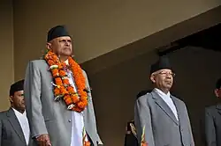 On 12 April 2008, Nepal resigned as General Secretary of the CPN (UML),[9] after having lost the Kathmandu 2 seat to Maoist candidate Jhakku Prasad Subedi in the 2008 Constituent Assembly election.[10] Subedi was a comparatively obscure candidate.[11] Nepal was also defeated in Rautahat-6 constituency by Maoist candidate Devendra Patel.[12] He later won both Kathmandu 2 and Rautahat 1 seats in the Second Constituent Assembly election of 2013. Nepal later chose Rautahat 1.[13] He won the Kathmandu 2 constituency again in the 2017 general election by a margin of 14,000 votes.[14]