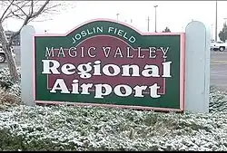 Magic Valley Regional Airport (IATA: TWF[2], ICAO: KTWF[3], FAA LID: TWF), also known as Joslin Field, is a public use airport located four nautical miles (7 km) south of the central business district of Twin Falls, Idaho. The airport is owned by the City and County of Twin Falls.[1] It is mostly used for general aviation but is also served by one commercial airline.