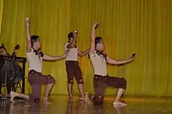 The Maglalatik (also known as Manlalatik or Magbabao) is a folk dance from the Philippines performed by male dancers.[1] Coconut shell halves are secured onto the dancers' hands[2] and on vests upon which are hung four or six more coconut shell halves. The dancers are shirtless and wear only red pants. The dancers dance by hitting one coconut shell with the other; sometimes the ones on the hands, the ones on the body, or the shells worn by another performer, all in time to a fast drumbeat.