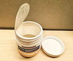 Magnesium glycinate, also known as magnesium diglycinate or magnesium bisglycinate, is the magnesium salt of glycinate. The structure and even the formula has not been reported. The compound is sold as a dietary supplement.[1][2] It contains 14.1% elemental magnesium by mass.