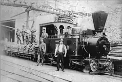 The track was being constructed in 1901.[5][6][7][8] The construction was led by B.F. Waller, who started to work as managing director and responsible engineer in January 1901. Previously, the route had been roughly surveyed by the former mine manager T.H. Jones. Although the destination was only 6.5 km (4 miles) from the interchange in Waratah, the route had a total of 194 bends and a length of 16 km (10 miles) due to the difference in altitude of 183 m (600 feet). The climb for the first 13 km (8 miles) was 1.9‰ (100 feet per mile) and then it was then less steep. The light rail profiles weighing 15 kg/m (30 lb per yard) were laid on 22,000 sleepers, most of which were made of Huon Pine.[9]