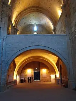 Maguelone Cathedral[1] (French: Cathédrale Saint-Pierre de Maguelone ; Cathédrale Saint-Pierre-et-Saint-Paul de Maguelone) is a Roman Catholic church and former cathedral located around 6 miles (9.7 km) south of Montpellier in the Hérault department of southern France. The building stands on an isthmus between the Étang de l'Arnel lake and the Mediterranean Sea in the Gulf of Lion, which was once the site of the original city of Maguelone, opposite the present-day town of Villeneuve-lès-Maguelone.