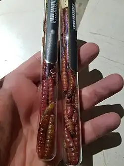 Maguey worms (Spanish: gusanos de maguey, [ɡuˈsanos ðe maˈɣej] ⓘ; chinicuiles [tʃiniˈkwiles] ⓘ) are either of two species of edible caterpillars that infest maguey plants (Agave americana and Agave tequilana).[1][2][3]