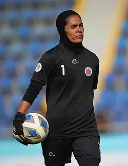 Mahdiyeh Molaei Sarbijan (born 29 January 1991), known as Mahdiyeh Molaei (Persian: مهدیه مولایی),[4] is an Iranian footballer who plays as a goalkeeper for Kowsar Women Football League club Bam Khatoon F.C. She has also played for the Iran women's national team.