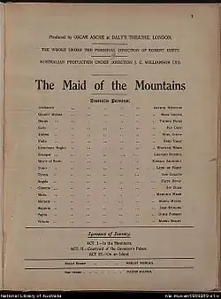 - ^ "The Maid of the Mountains – Finborough Theatre", www.indielondon.co.uk, 2016, accessed 21 January 2018