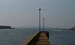Formally the coast line retreated at the point of the Kyushu University Maidashi campus today, where there was a place of scenic beauty with white sands and pine groves called Shirahama aomatsu (白砂青松, the pine trees with beautiful scenery of the seashore). But later a landfill site was created and now views of the sea are left only around the Osiroi hama (お潮井浜) of Hakozaki shrine,[14] and an extensive prospect of Hakata Bay. Nowadays, as a view of the sea is to be a selling point, some high-rise condominiums, targeted for high-income class, have been constructed.[3][15]