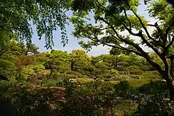 There are many gardens, such as Azuma Koen,[8] Maidashi ryokuchi, Kyushu University campus, Hakozaki-gu hana teien (筥崎宮花庭園, Hakozaki shrine flower garden), etc. The maidachi area is famous for being a garden city. Fukuoka city has a high number of parks for Japan,[9] especially the Midashi area with low population density and educational facility and research establishment cover a much larger area.[10][11][12] Maidashi ryokuchi is not only a park but also a historic site which gives the citizens opportunities to learn the modern history of Hukuoka since the Meiji era.[13]