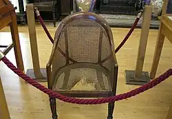 There are internationally important collections of artefacts of Pacific, Oceanic and African ethnography as well as diverse material from Asia and North and South America.[14] Napoleon's chair has been held in the museum since 1866. It was one of a pair in the house of Reverend Richard Boys on St Helena, and after Napoleon was exiled there in 1815 he habitually sat in this chair, conversed with Boys and damaged the chair with his penknife while talking.[15]