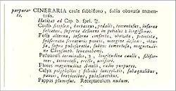 - ^ Manning, John C. (2016). "Nomenclatural adjustments in African plants 2: 1. Cineraria purpurata L. is an earlier name for Mairia hirsuta DC. (Asteraceae: Astereae)". Bothalia - African Biodiversity and Conservation. 46 (1).