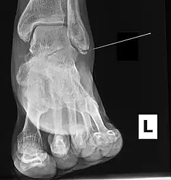 - ^ Thordarson, David B. (September 1996). "Detecting and Treating Common Foot and Ankle Fractures: Part 1: The Ankle and Hindfoot". The Physician and Sportsmedicine. 24 (9): 29–38. doi:10.3810/psm.1996.09.1337. PMID 20087018.