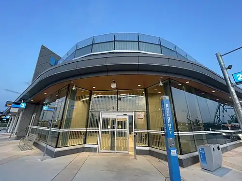 Major Mackenzie West Terminal is a York Region Transit local bus terminal in Vaughan, Ontario, Canada. It is located on Major Mackenzie Drive immediately north of Canada's Wonderland and immediately south of Cortellucci Vaughan Hospital just west of Jane Street. The terminal partially opened on November 6, 2022, and fully opened on April 30, 2023.[2] It includes a passenger pick-up and drop-off area and a pedestrian and cycling underpass connection to Cortellucci Vaughan Hospital.[1] It has 12 bus platforms.[3]