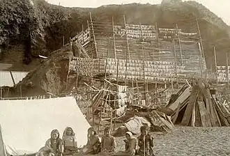 The Makah traditional family consisted of parents and children living in a particular area.[10] Members of Makah families were ranked in society according to their relationship to the chief of the tribe.[9] There were no stratifications in gender roles; all genders were equal, participating in the hunting of whales and other livestock. Although men were more fishermen and hunters, women's activities centered on gathering resources for the family.[11]