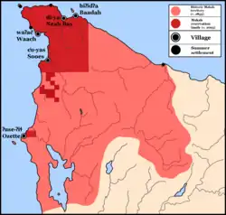 Makah territory (light red, c. 1855) overlayed with current reservation lands (dark red)