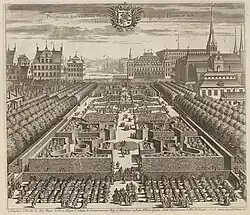 Construction of the mansion was begun in the 1630s on a piece of land owned by Jakob De la Gardie. De la Gardie tasked Hans Jacob Kristler with the construction. The five-floor building was built of brick and stone with a copper roof. The living quarters were situated in the ground floor, the festivities hall on the second (piano nobile), dancing and music rooms on the third, and stores and armoury on the fourth and fifth floors. The cellar comprised larders, while housekeeping facilities, stables and gardens were situated outside the main building. Four towers marked the corners of a facade richly decorated with stone masonry and adorned with bay windows and column-supported loggias in Italian style. The interior was equally splendid, with stucco decorations, picturesque plafonds, tapestries, decorative masonry, and galleries of paintings.