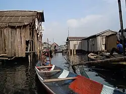 Makoko is sometimes referred to as the "Venice of Africa" owing to its waterways.[1] Its population is considered to be 85,840; however, the area was not officially counted as part of the 2007 census and the population has been estimated to be much higher.[2] In July 2012, the Lagos State government ordered that some of the stilts beyond the power lines be brought down without proper notice. This led to the destruction of several stilts on the Iwaya/Makoko waterfront and many families were rendered homeless.[3]