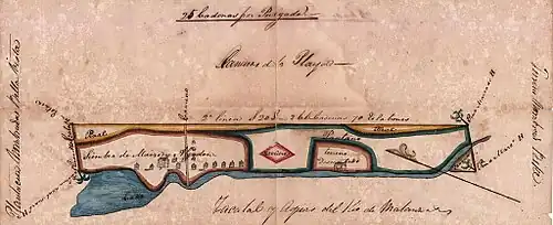 In 1816, the Spanish government granted Hernández a large tract of land at the confluence of Graham's Swamp and what was then the headwaters of the southern end of the Matanzas River, on its western bank. There he cultivated about 700 acres of sugarcane, calling the place St. Joseph plantation. According to a deed dated March 11, 1816, for 1,500 pesos in cash Father Miguel Crosby sold Hernández 800 acres on the coastal barrier island, described as "800 acres with its adjoining marshes on the Matanzas River, bounded on the north by lands of John Bautista Ferreyra".[6] The name "Mala Compra" had been given previously to the property by another owner. In 1818, Hernández bought from Ferreyra's son, Francis Ferreira (spelling of these names varied, often in the same document), another property of 375 acres adjoining Mala Compra called Bella Vista.[7] Ferreira was a sea captain who trafficked enslaved African people in Florida.[8] The soil of the cotton fields at Mala Compra was said to have been as white and sandy after some years as the Atlantic beach, yet still produced abundant crops of Sea Island cotton. This was high hammock land where the original growth was almost exclusively Southern live oak.[9]