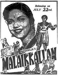 Malaikkallan (transl. Thief of The Hills) is a 1954 Indian Tamil-language action adventure film starring M. G. Ramachandran and P. Bhanumathi. The film was released on 22 July 1954, and was a blockbuster. It ran more than 140 days in Chennai and all other major cities. It was the first Tamil film to win a President's Silver Medal.[1]
